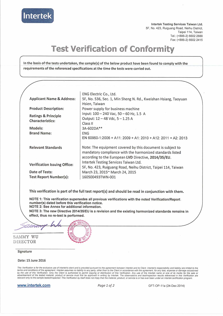 3A-602DAxx ( LVD Cert-160500493TWN)